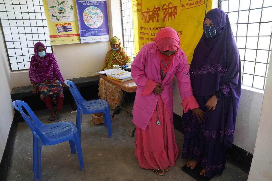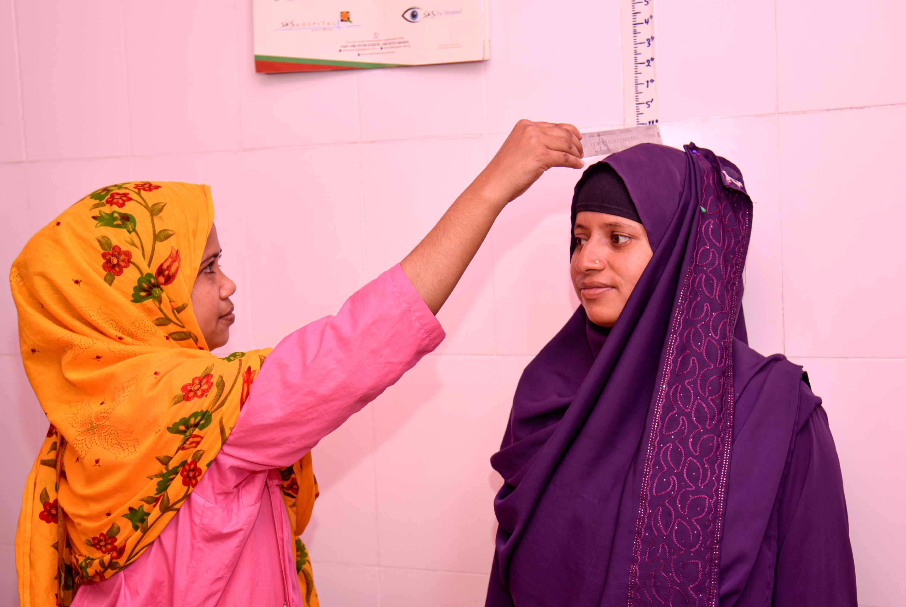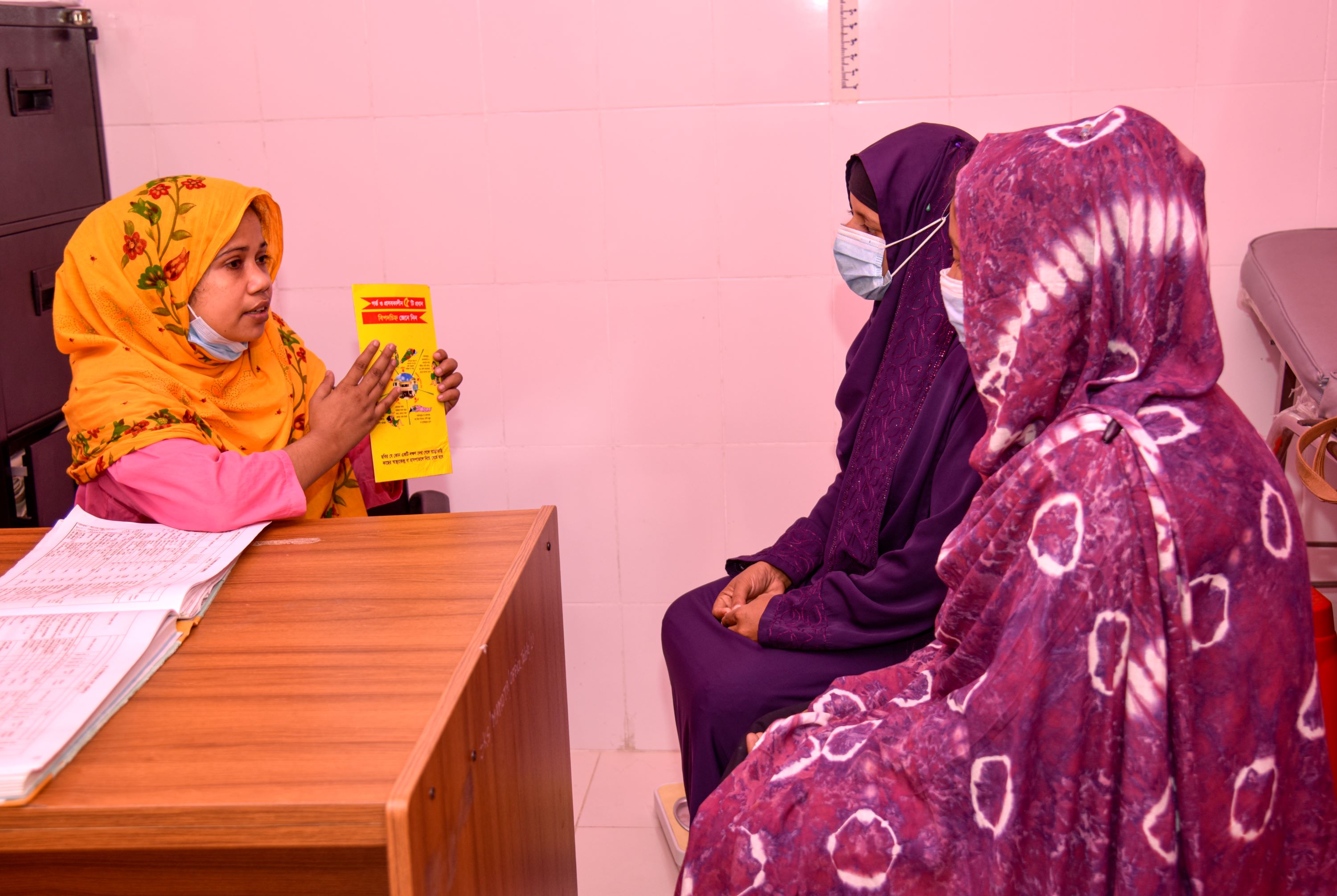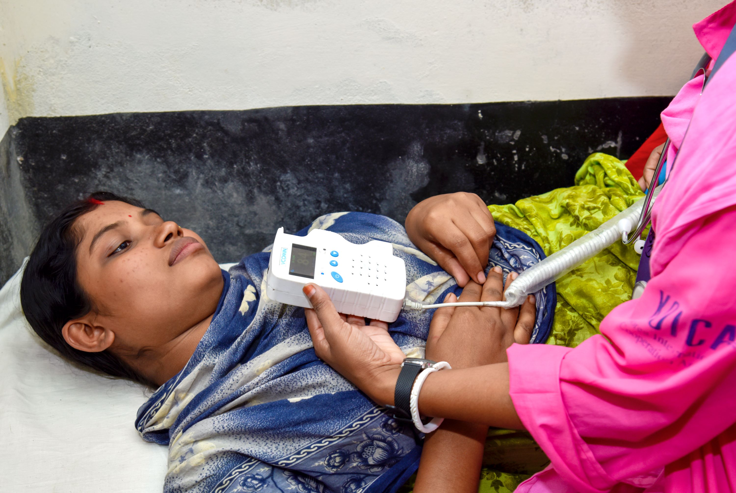 A pregnant women receive antenatal care from Mamota's Midwife at Bamondanga UHFWC