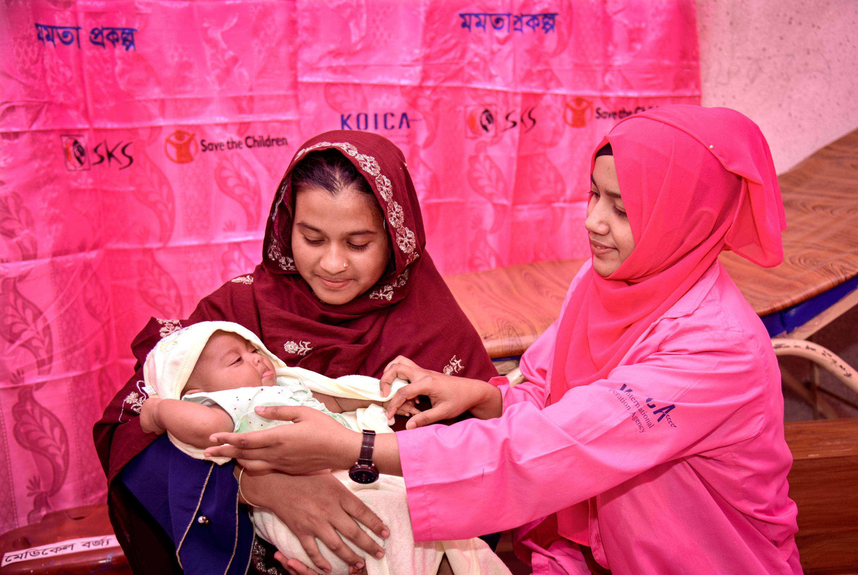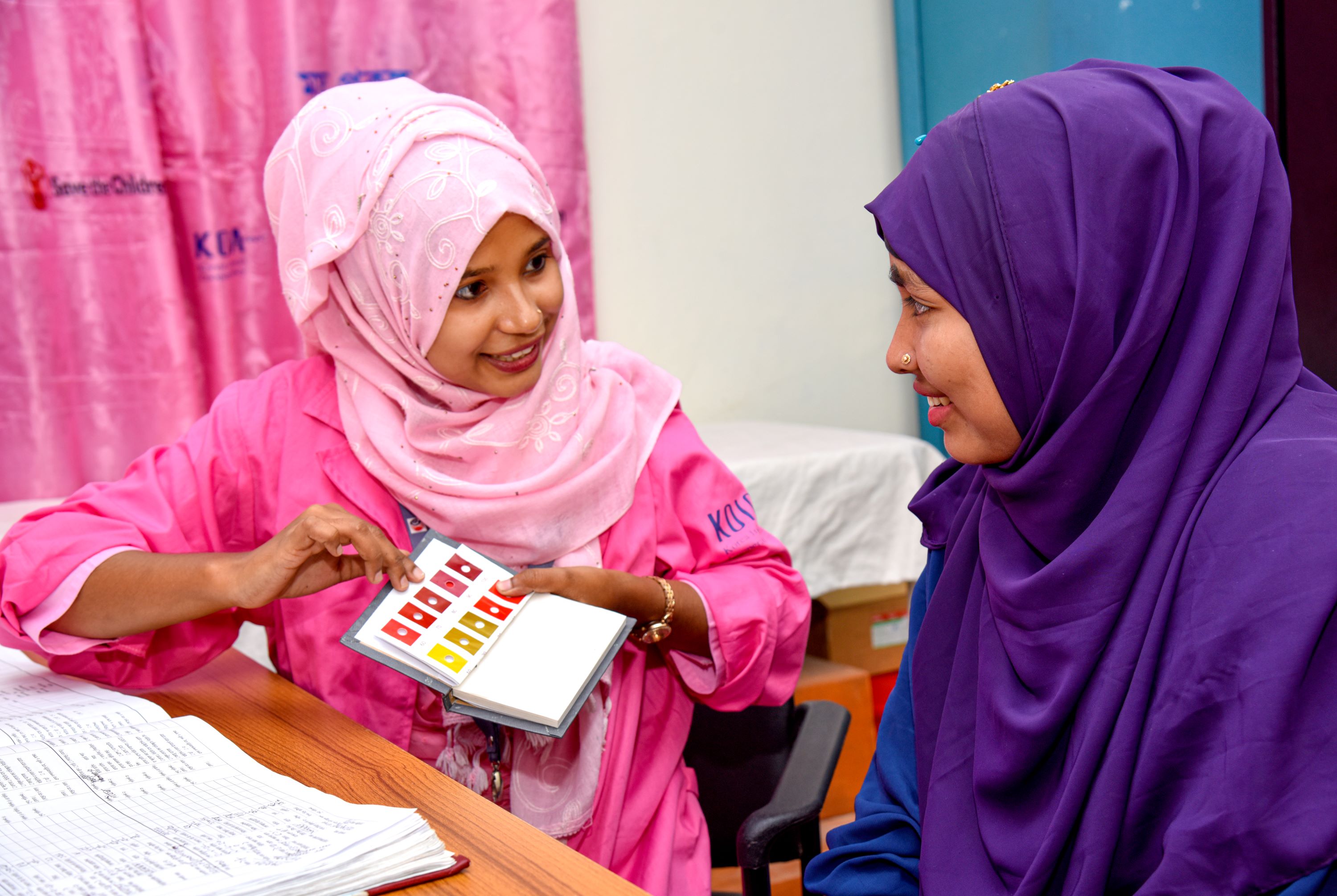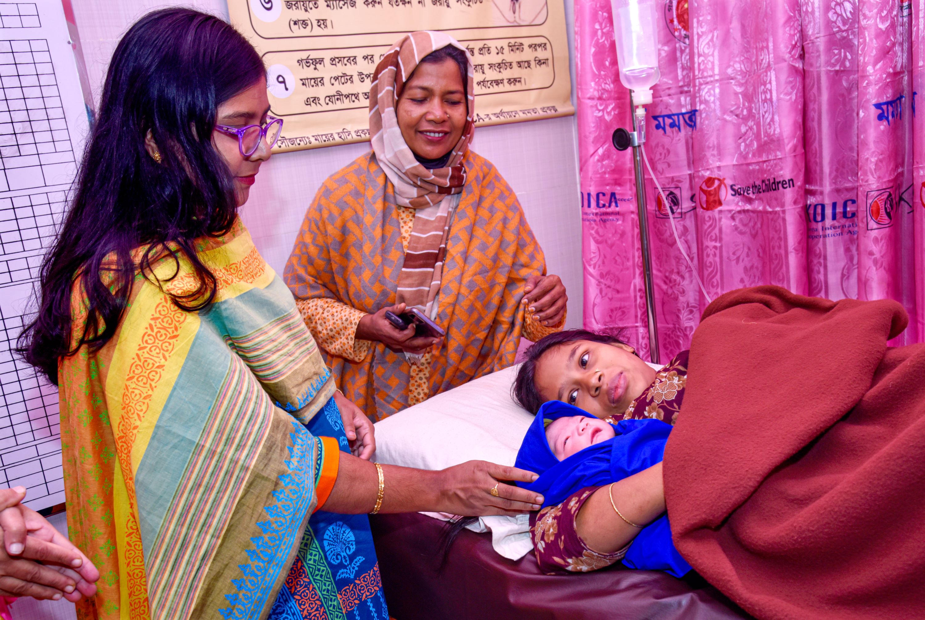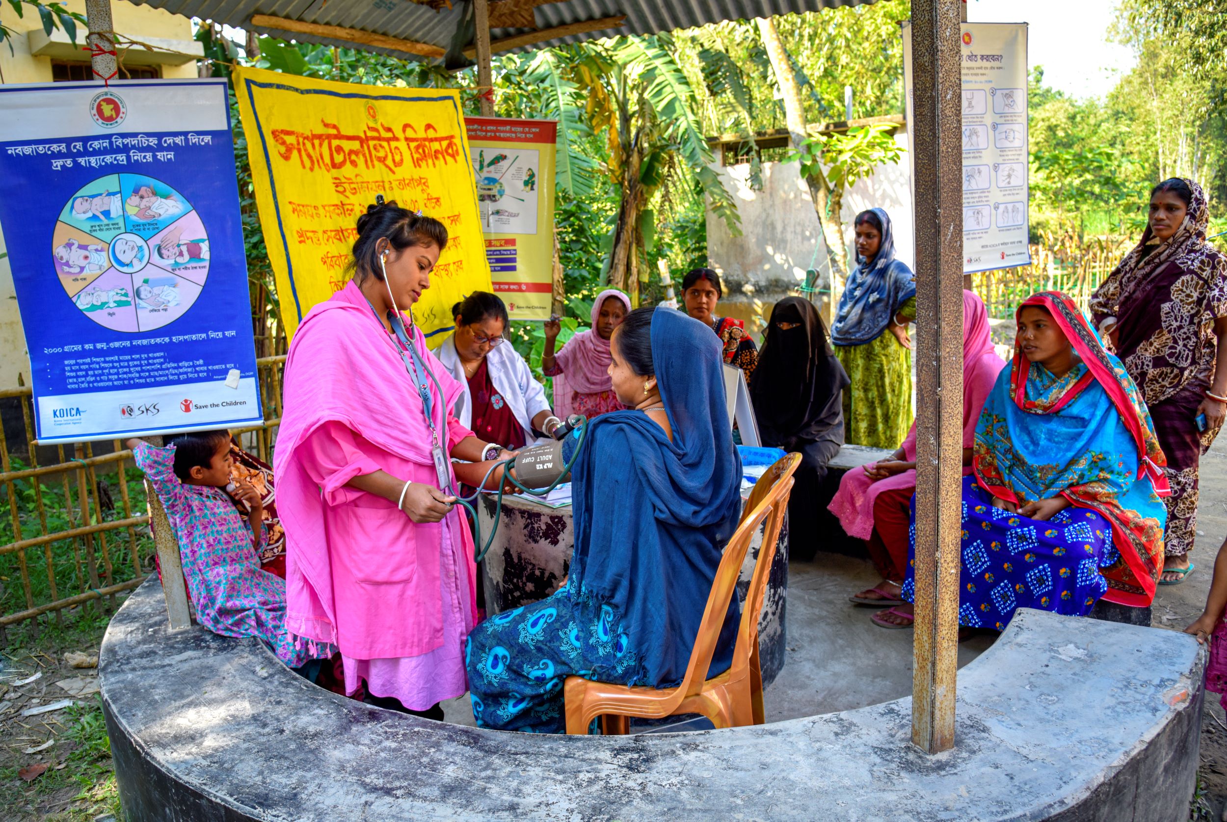 A pregnant women receive antenatal care from Mamota's Midwife at Bamondanga UHFWC