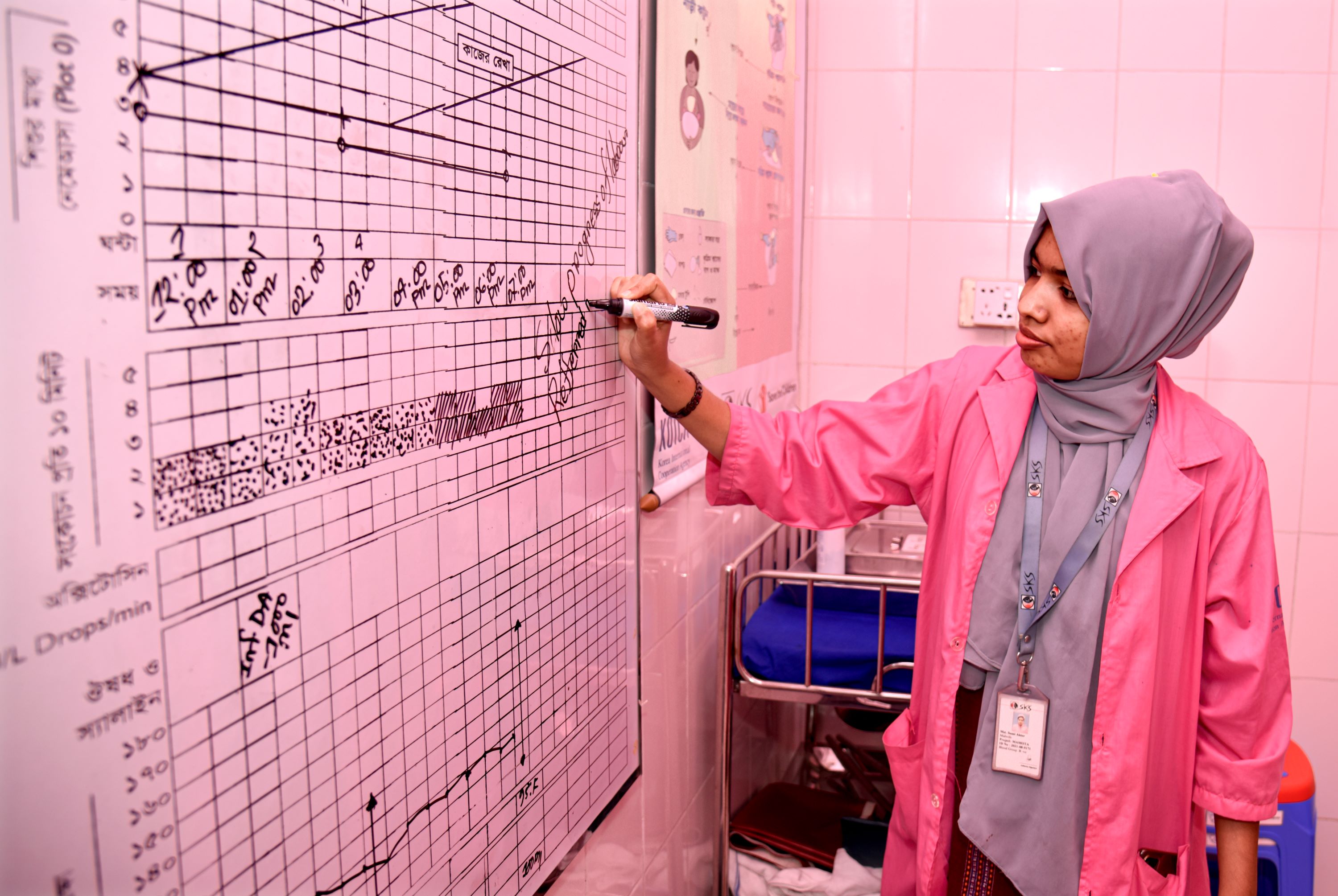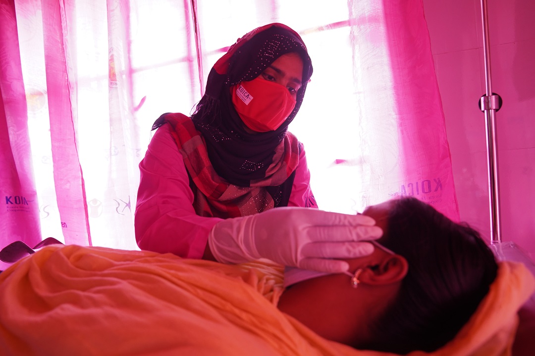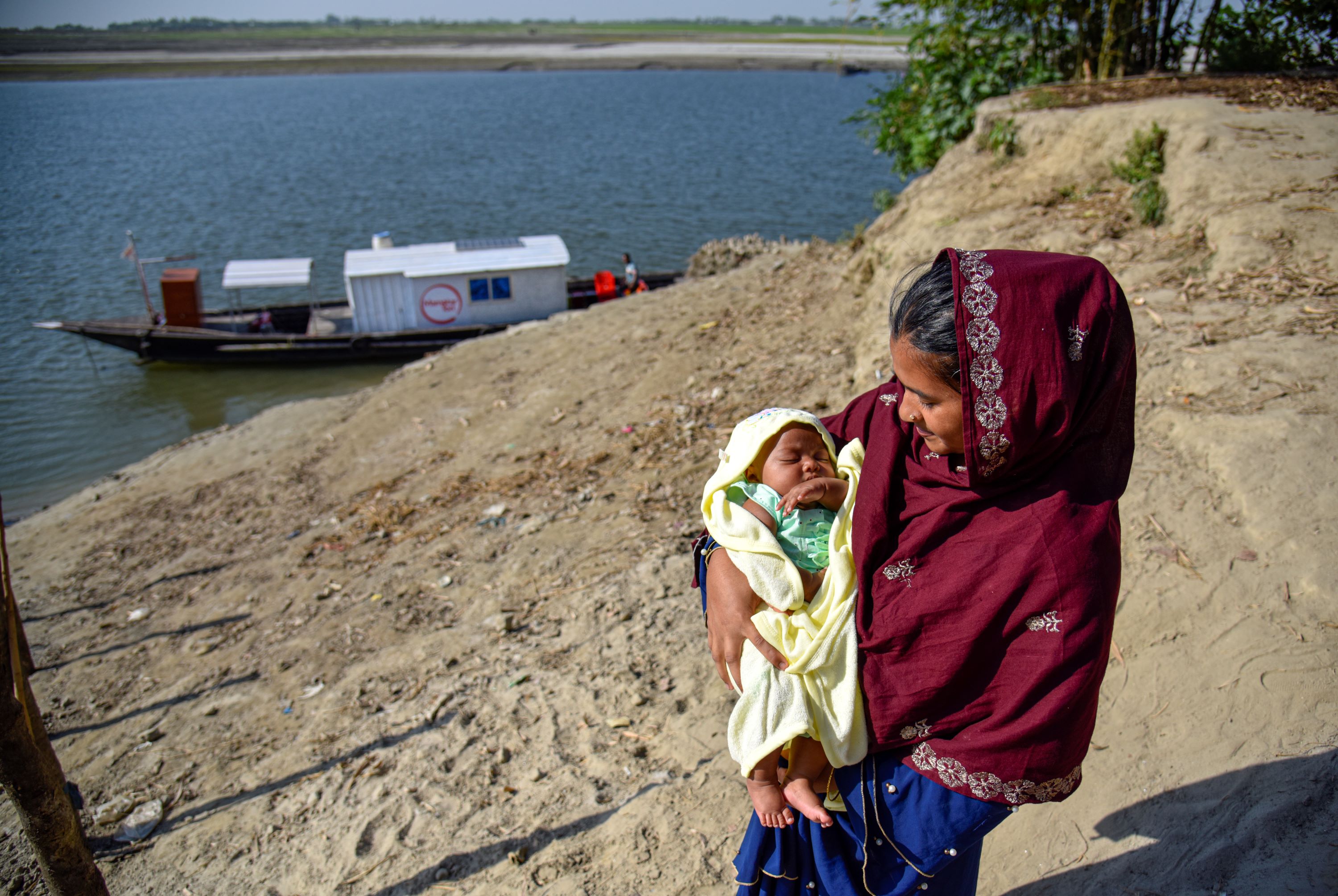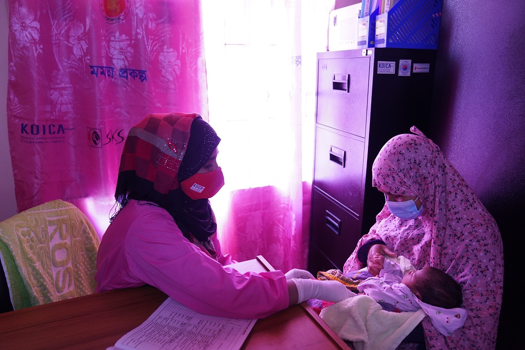 A pregnant women receive antenatal care from Mamota's Midwife at Bamondanga UHFWC